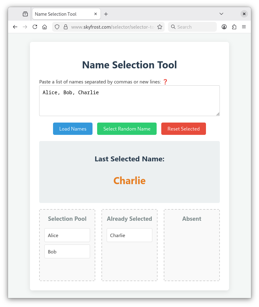 - Selected names removed from selection pool.